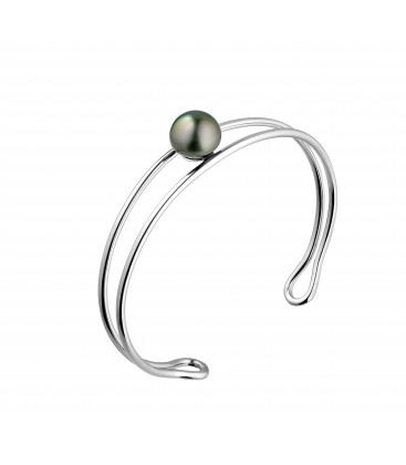 Bracelet rigide argent + 1 perle de tahiti ronde