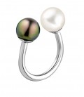 ARGENT : BAGUE 1 PERLE DE TAHITI RONDES 9/10 MM ET 2 PERLES DE CULTURE D'EAU DOUCE RONDES QUALITE A 7,95 GR