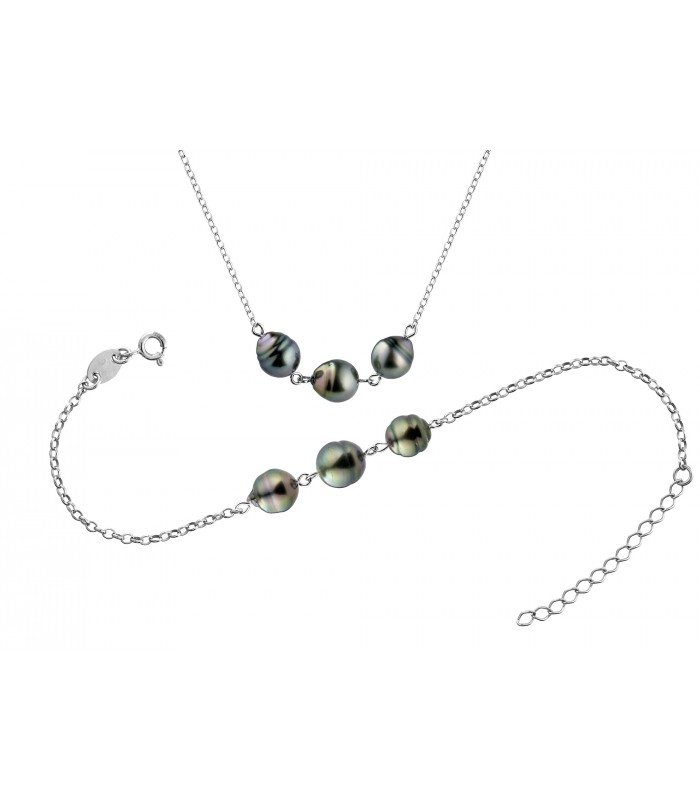 - BRACELET CHAINE FORCAT ARGENT + 3 PERLES DE TAHITI CERCLEES 8/10 MM (BRAFD40 3C)